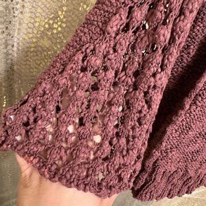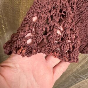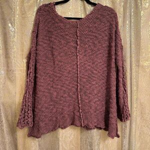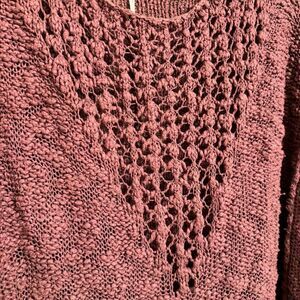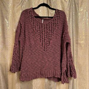Free People Maroon Boho Chunky Open Knit Bell Sleeve Sweater Oversized XS