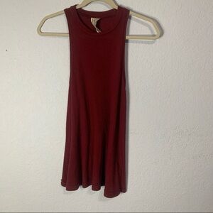 Free People Maroon High Neckline Ribbed Knit Tank Top