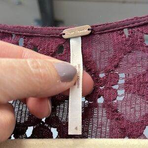 Free People Maroon Lace Long Sleeve Mini Dress Size 4