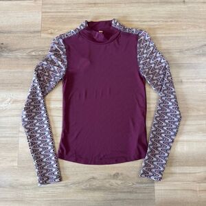 Free People Maroon Long Sleeve Sheer Womens Top Size Small Comfy Chic Luxury