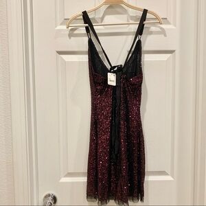 Free People Maroon Plum Gold Rush Sequin Mini Strappy Back Slip Dress