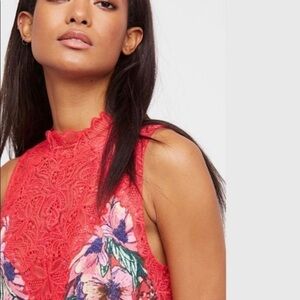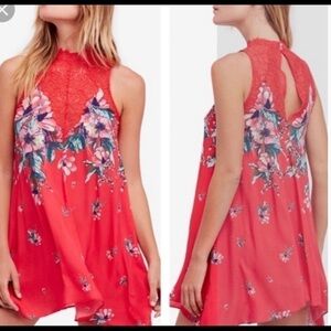 Free People Marsha Printed Slip Mini Dress Red—Boho—Beautiful patterned fabric and lace. New with tags. Size Small