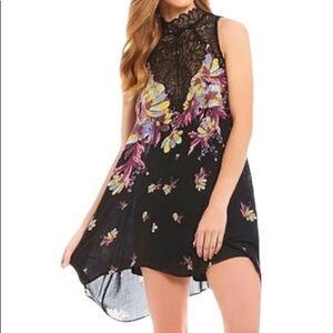 Free People Marsha Printed Lace-Neck Mini Dress in the Size XS
