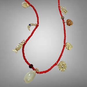 Free People Marson Belly Chain Red NWT Charm Necklace Bohemian Layering Charms