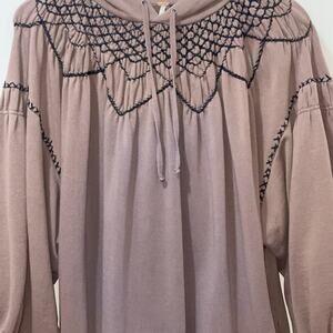 Free People Marty Smocked Sweatshirt Hooded Tunic Mini Dress Brown Bear Size Sm