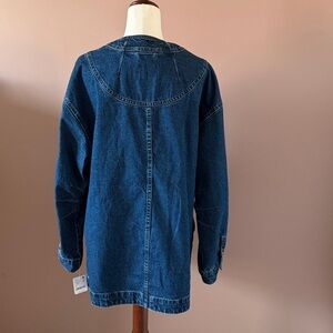 NWT! Deep indigo wash. Oversized. Pit to pit 21”. Length 32”. Blazer inspired cut and double breasted design.