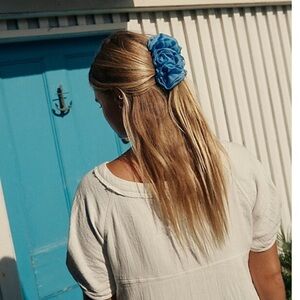 In Bright Sky Blue! Rosette Hair Claw Clip.