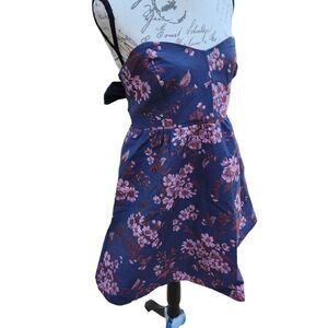Free People Matilda Tie Back Strapless Babydoll Mini Dress Size Large Blue