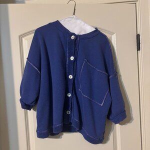 Free People Matilda Sweatshirt in oversized medium and color Baja Blue. Please note that this sweatshirt is definitely more purple than blue. Great condition-worn only a handful of times. Laidback, slouchy, yet chic sweatshirt. Boxy fit with button-front closures, chest pocket, and drop-shoulder sleeves.