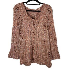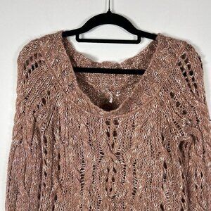Free People Mauve Bell Long Sleeve Knit Pullover Boat Neck Women Sweater Size L