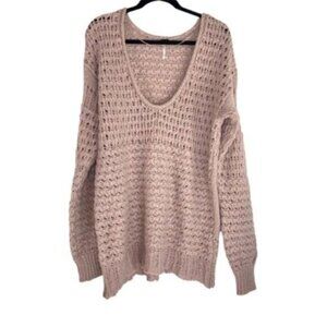 Free People Mauve Crochet Scoopneck Pullover Sweater. Size medium. Open weave knit. Oversized. Excellent used condition.