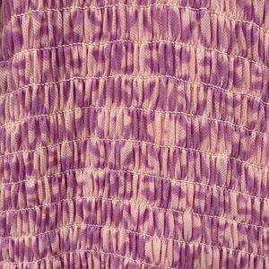 Elegant mauve dress with intricate pattern. Long sleeves and flowing skirt. Ideal for any occasion.