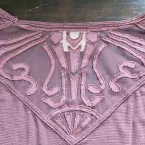 Free People Mauve Long Sleeve Mesh Back Top Embroidered Details size S