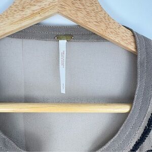 Stunning sheer purple/gray embroidered tunic top by Free People. Some minor loose embroidery (see photo). Size small. About 21 inches from pit to pit laying flat. About 28.25 inches long in front and 29.25 inches in back.