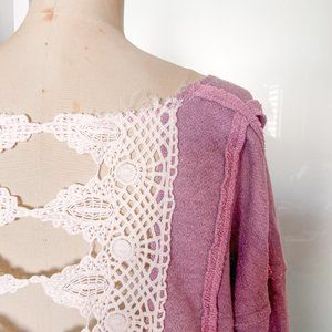Free People Mauve cropped sweatshirt with crochet back size S