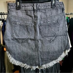 This super cute black mineral washed denim skirt from Free People is perfect for a casual day out or a night on the town. Its fitted silhouette and raw hem fringe offer a playful and versatile addition to your wardrobe. Crafted with attention to detail, this skirt effortlessly combines style and comfort.