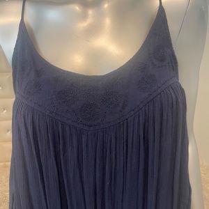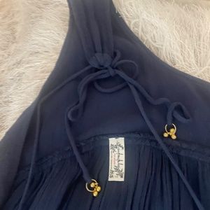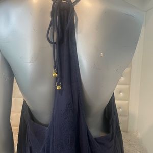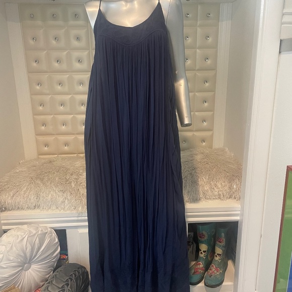 Free People Maxi Dress. Embroidered top and around the hem line. Gold embellishment on the ties.