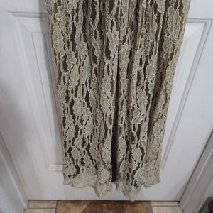 Free People Maxi Dress Blackened Crushed Gold Lace Embroidered Beaded RARE!