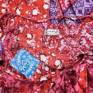 Bohemian Free People “With Love From India” maxi dress in red and pink with mixed floral and paisley prints.