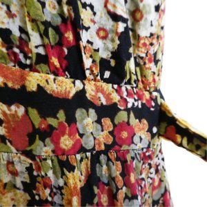 Free People Maxi Dress Tiered Ruffle Flare. Valerie Festival in Midnight Garden. Braided Straps Cross Back. Attached Waist Tie Front or Back. Machine Wash Rayon. Tagged Size M.