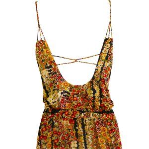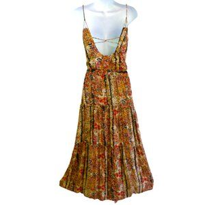 Free People Maxi Dress Tiered Braided Straps Criss Cross Back Attached Waist Tie