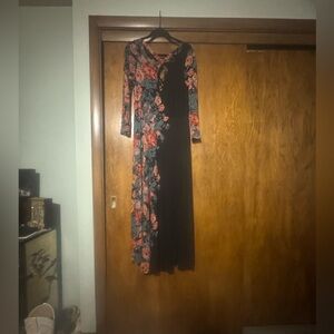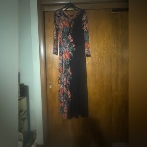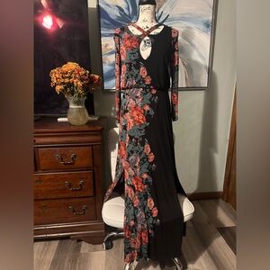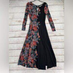 Rare!!! Oversized. Fits small, medium and large. Free People Maxi Dress Women's Small Black Red Floral Boho Long Sleeve Criss Cross