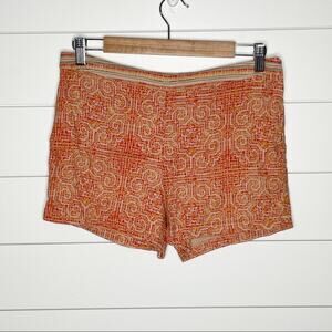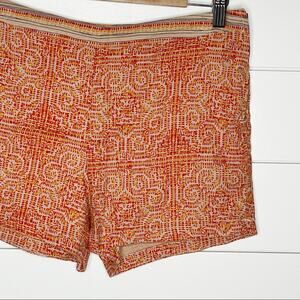 Free People Maya Tribal Print Linen Side Zip Bohemian Shorts Red Orange Size 4