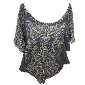 Free People Mayan Sunburst Short Sleeve Sweater cow neck size M