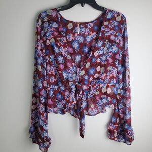 Free People Maybel Floral Sheer Blouse Size Small
