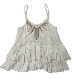 Free People Meadow Ballerina Top White Embroidered Boho Festival Layer Ruffle M