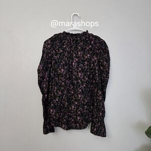 Add romance to your work-to-play look in this flowery tie-neck blouse styled with luscious puff sleeves.