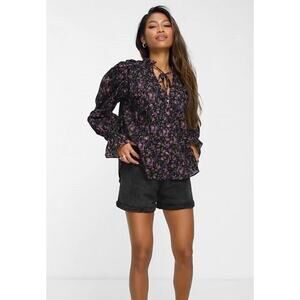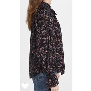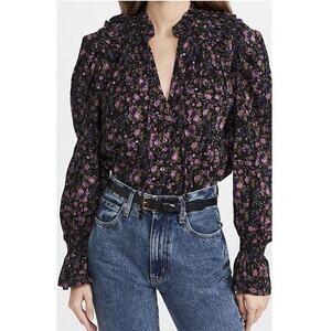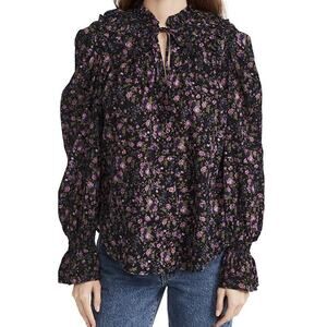 Free People Meant To Be Smocked Blouse Floral Black Combo Peasant Boho