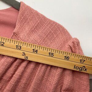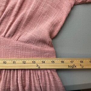Lightweight textured fabric with a flattering V-neckline and button details. Flowy midi silhouette ideal for casual outings. Good used condition, Rose Pink color, Material Cotton
