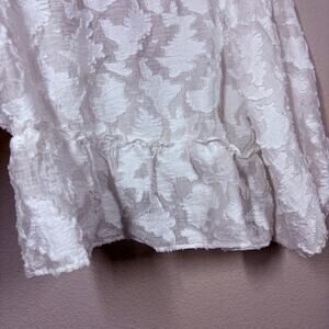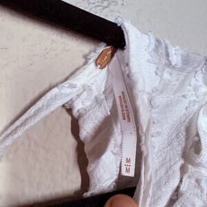 Free People Medium Callie Top White Cropped Cut Out Tie Back Puff Sleeves