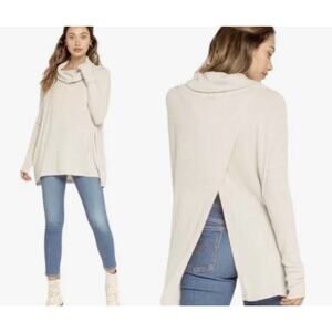 Free People Medium Thermal Top Juicy Cowl Neck Split Back Long Sleeve Stone Cold
