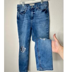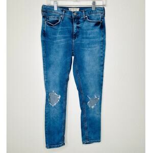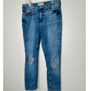 Free People Medium Wash Distressed Knee High Waist Skinny Jeans 29