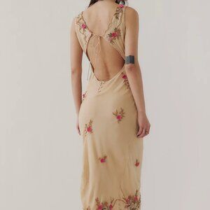 The perfect blend of sweet and sultry, this stunning midi dress is featured in a slip-inspired silhouette with embroidery, lace, and bead detailing throughout for the ideal femme finishing touch.