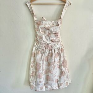 Charm endlessly in this stretch-poplin mini designed with a ruched bodice and a sweet back bow.