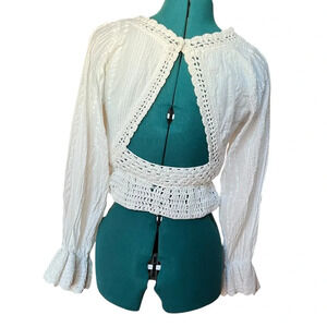 Free People Megan Chunky Knit Open Back Peasant Boho Festival Blouse