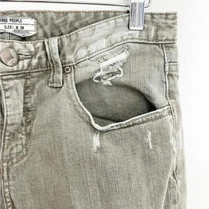 Free People Megs Distressed Destroyed Jeans in Copenhagen wash. Coloring is like a washed out brown and gray. Front zip closure with button, ankle style, and factory distressing throughout. Raw hem. Size 28.