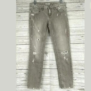 Free People Megs Gray Jeans Destroyed Distressed sz 26