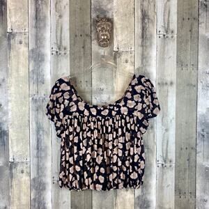 Free People Megs Leopard Tulle Cropped Blouse in Black Combo Size Small New!