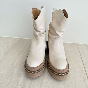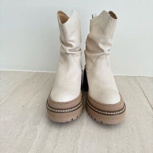 Free People Mel Slouch Boot Chunky Lug Sole boots. Ivory Tan Soft Leather. Size 8.5. New, not in original box.