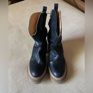 Free People Mel Slouch Leather Boot Black Chunky Sole 6.5