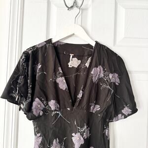 Free People Melanie Black Dark Purple Floral Print Swing Mini Dress Flutter 0