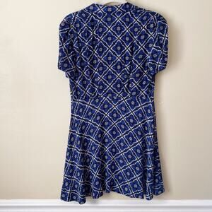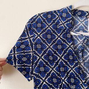 Free People | Melody Mini Dress Geometric Print Tie Neck Boho Blue Black Size 2
