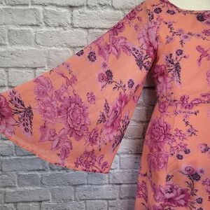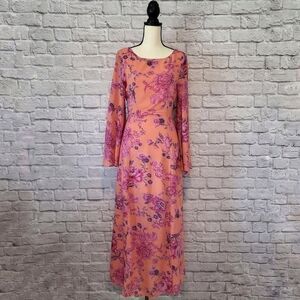Free People Melrose Dress Bell Sleeve Criss Cross Back Detal Maxi Floral Size 4