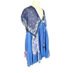 Free People Mended With Scarves Mini Dress S Boho Cottage Slouchy Oversized