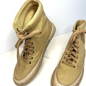 Free People Menorca Lace Up Boots in Tan Canvas, Size 8 NIB