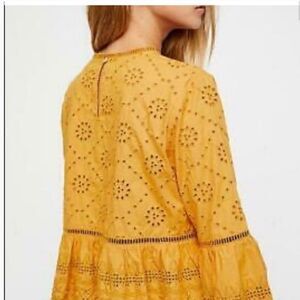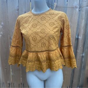 Super sweet eyelet blouse featuring with subtle cutout trim and scalloped edges.